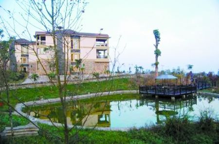 被媒體曝光的文強的“雙子別墅”位于仙女山鎮(zhèn)石梁子村黃家灣,占地近二十畝。兩棟雅黃色的西班牙殖民式別墅位于那片風(fēng)景區(qū)制高點,都是三層樓,外觀一致,高高的煙囪顯示別墅里都有歐式壁爐,一樓外墻由深黃色的名貴石材造成,四周栽種了不少熱帶樹木;二樓和三樓都有超大露臺,正好可以在這個制高點用于遠望連綿起伏的遠山。別墅外建有人工小湖,湖邊的草坪有整潔的小徑可以散步,更有木質(zhì)的親水回廊一直延伸到湖中央。整個別墅區(qū)被柵欄包圍,朝里望去,花木、涼亭、水榭一應(yīng)俱全。