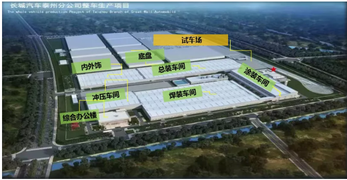 2019年2月20日,長城汽車確定落戶泰州;主要建設(shè)汽車整車、內(nèi)外飾及底盤制造項目,項目占地1173畝、規(guī)劃員工3000人,先期投資80億元,預(yù)計于2020年12月正式投產(chǎn)。泰州生產(chǎn)基地總規(guī)劃約10平方公里,通過5-10年的發(fā)展,構(gòu)建完整的汽車產(chǎn)業(yè)鏈體系,建設(shè)創(chuàng)新驅(qū)動、科技人文、宜居宜業(yè)、產(chǎn)城交融的國際化園區(qū),圍繞“創(chuàng)新、協(xié)調(diào)、綠色、開放、共享”發(fā)展理念,以投資建設(shè)汽車整車制造為核心,汽車關(guān)鍵零部件為配套、以及金融(包括汽車金融)、汽車保險、共享出行、汽車產(chǎn)業(yè)創(chuàng)業(yè)基地等為延伸的汽車科技產(chǎn)業(yè)園。泰州廠區(qū)主要包括:沖壓車間、焊裝車間、涂裝車間、總裝車間以及諾博汽車、精誠工科等四家零部件公司。泰州基地主要生產(chǎn)A01、ES11兩款車型,整體規(guī)劃年產(chǎn)能為20萬輛。長城汽車泰州分公司位置: